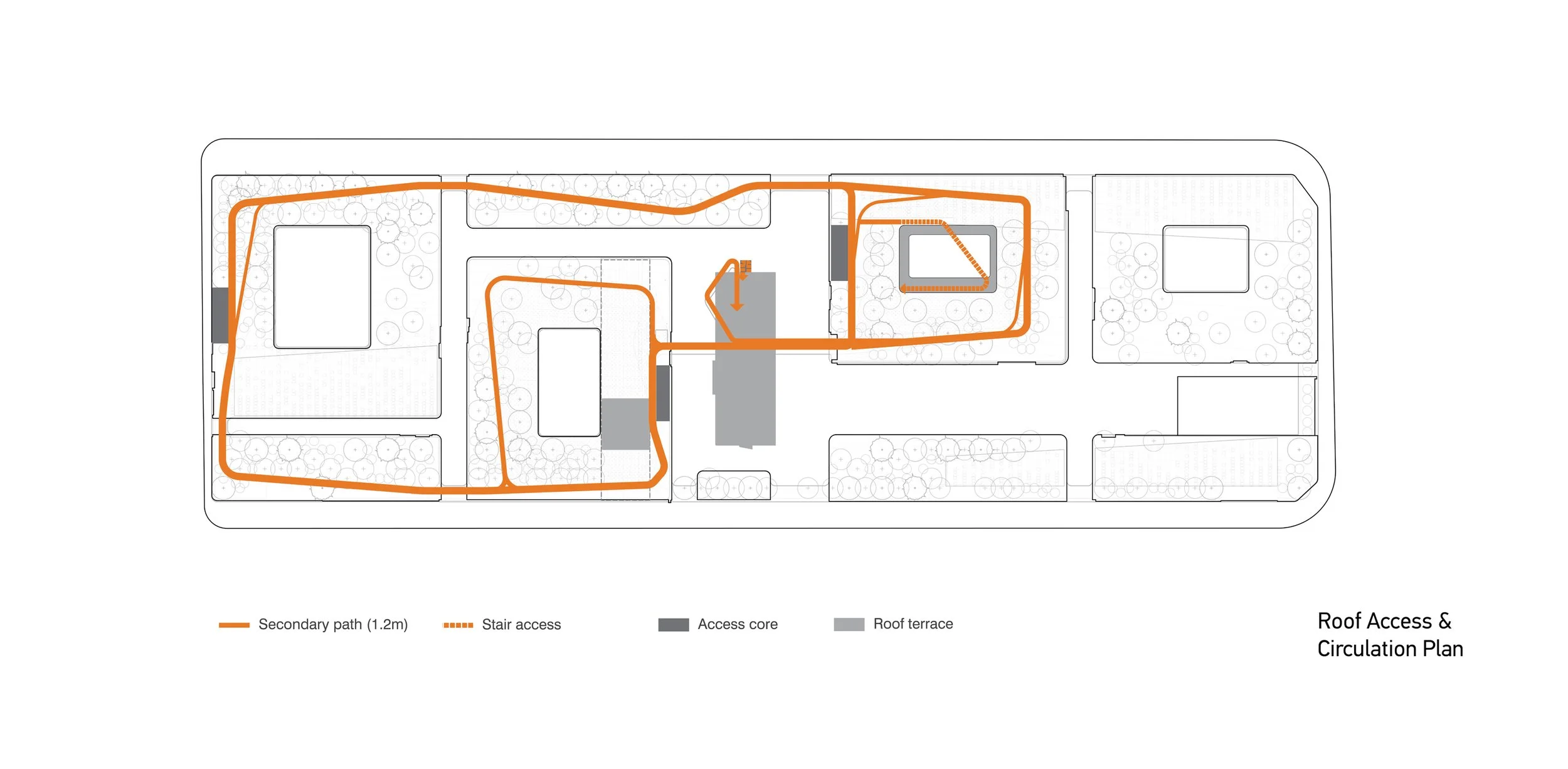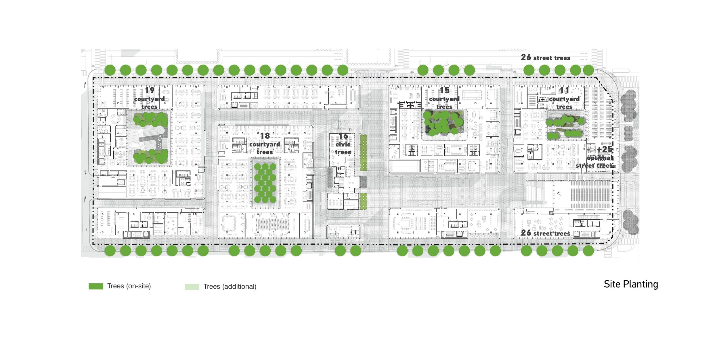 SITE | forever, assuming it continues to be hospitable | Our approach is to connect the building to the ground, and in turn the public, as much as possible. Rather than focus on a central atrium, as has become standards for buildings in the 20th century, we have sought to restore the street as the primary public mixing chamber for the city. Over the last 100 years the dominance of the car has eroded the street as a public venue, leading to the slow creep of setbacks and other “redundant” urban spaces becoming weaker. Our engagement of the street, within and without the site, restores the city as a venue for exchange and interactions. With the recent events surrounding the COVID19 pandemic, it’s clear the open street as a public space will be more critical than ever as we seek to build our shared, sustainable future. Intersecting the assertive urban approach are a series of ecologically rich landscapes in the courtyards and roof. As with the streets, these landscape seek to create a new kind of urban ecology that will support the environment and make our cities more livable.