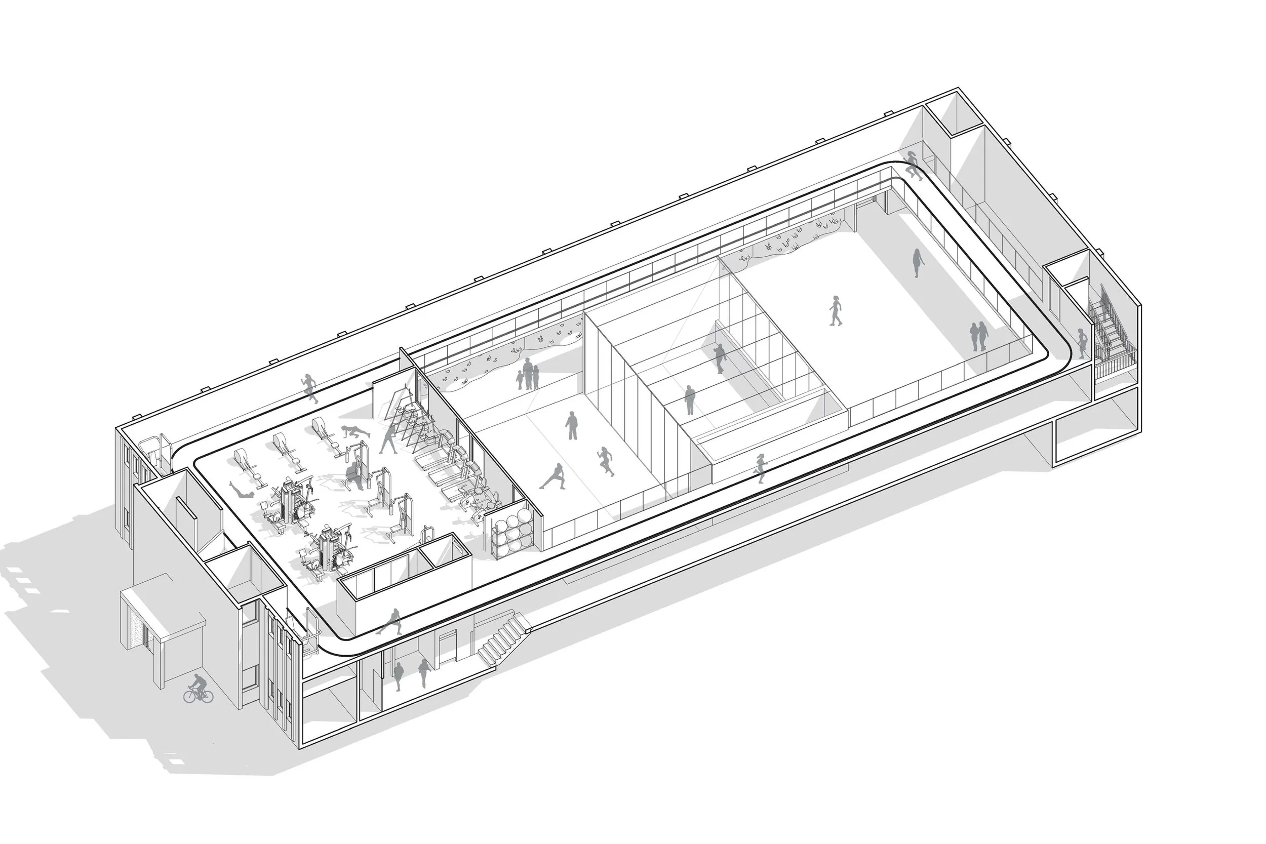 Final Functional Program: To meet the goals above it was determined that the project should primarily focus on providing the services requested by the community including better fitness facilities, space for a reuse store, and a workshop that could possibly be used by the adjacent school. These three program elements would meet the community’s stated goals while providing a diversity of functions to try to maximize the use of the building.