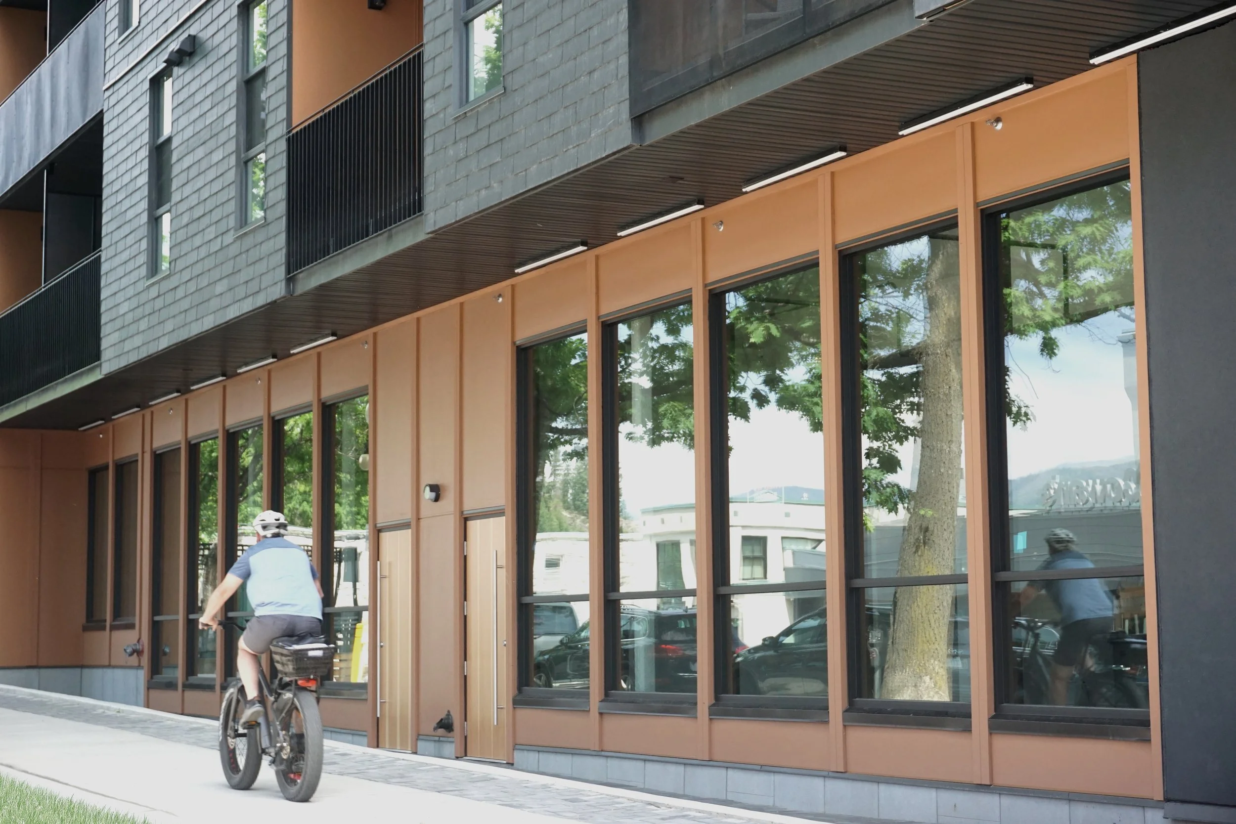 The design also benefits the community in other ways. The project adds two live/work units on the ground floor. Although there is little precedent for these types in Nelson, the development team saw an opportunity to provide housing for individuals who demand work and living space but cannot easily afford both. There is also a rentable street-level amenity unit and extensive bicycle parking.