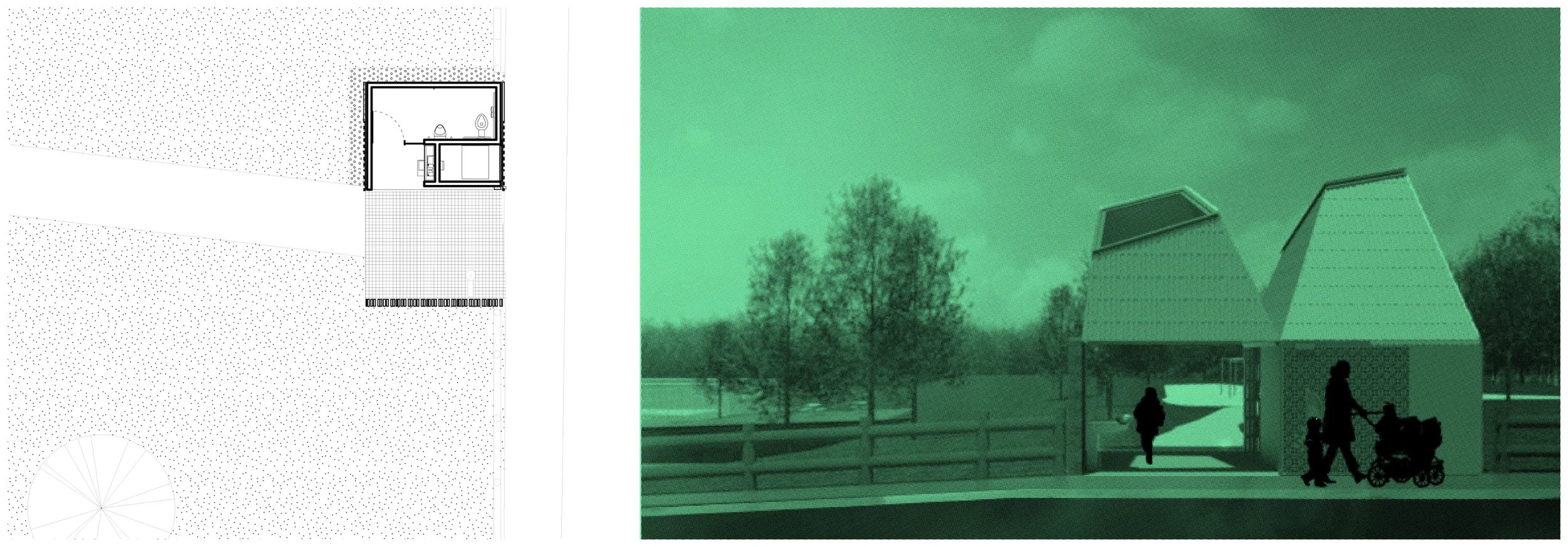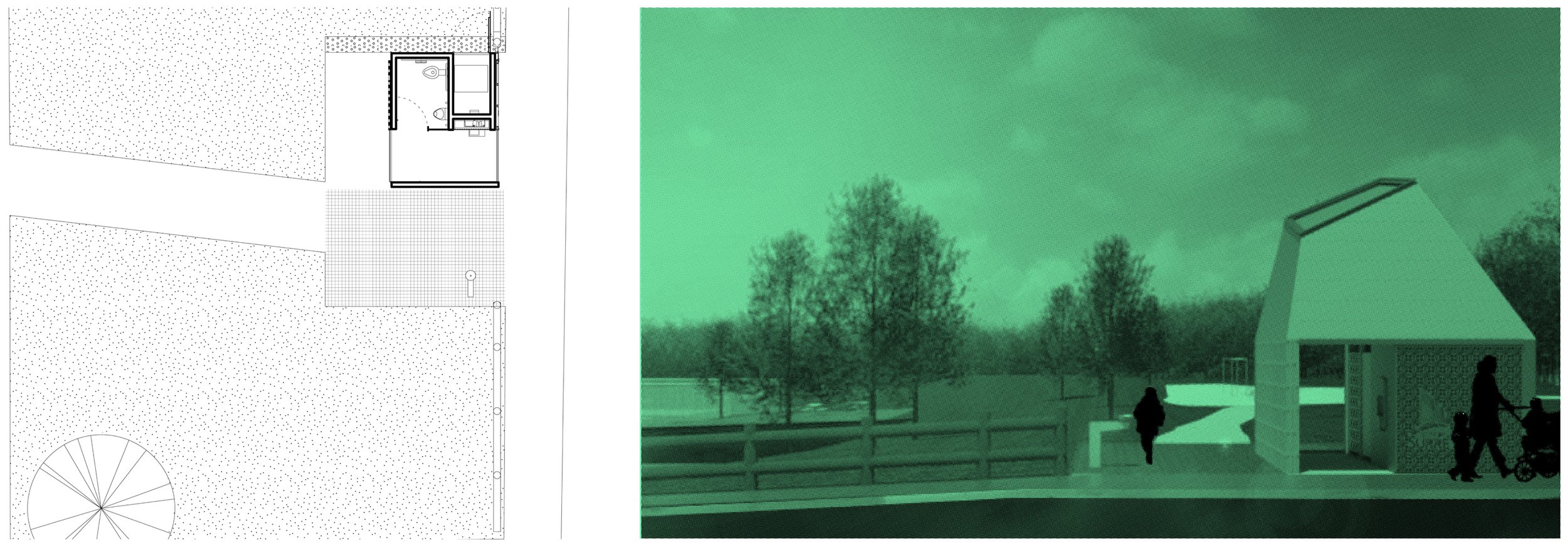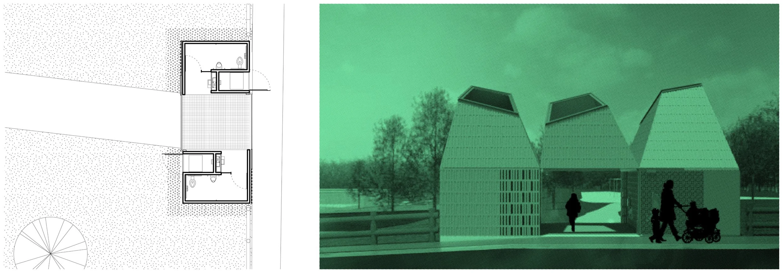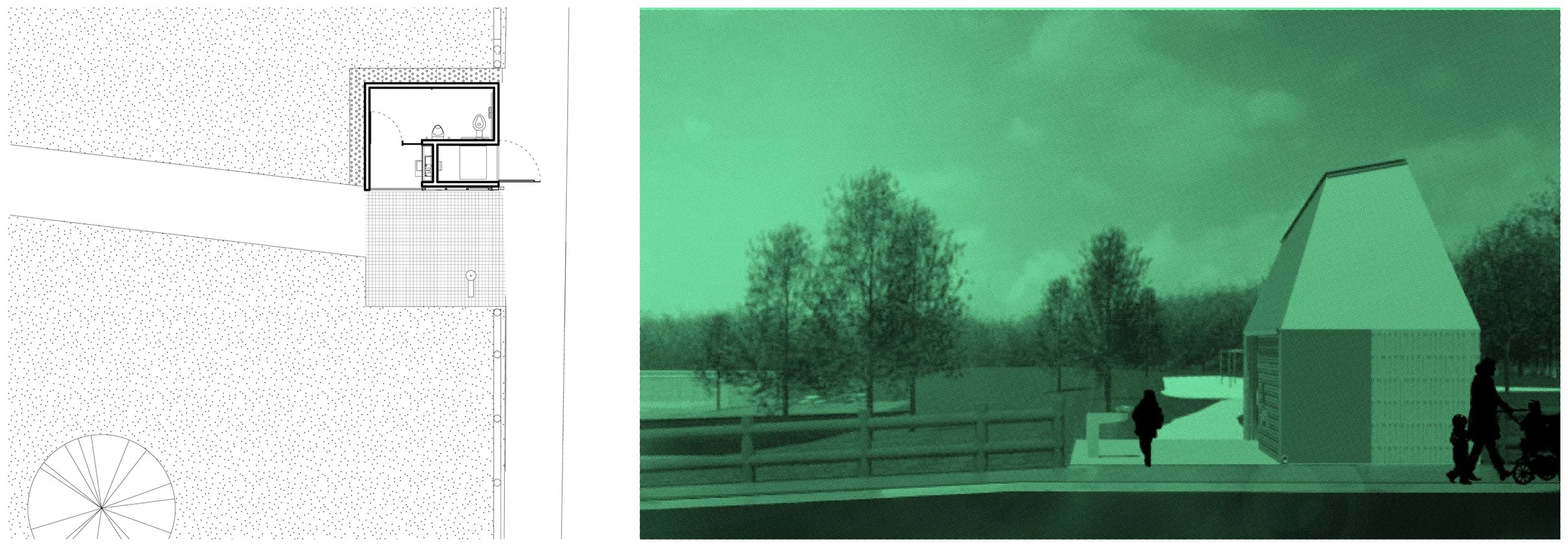 The proposed design is for an 11 m2 (120 sf) park washroom that can be configured in a variety of ways. The form of the unit ensures that the roof is sloped to prevent camping at the more isolated installations, with a glass top to provide natural light to the interior.
