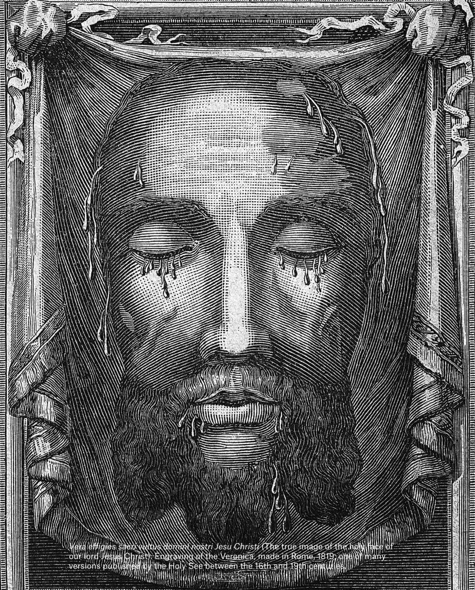 The truth perceived in the Veronica proceeded from its legend. Late medieval and early modern viewers believed it to be one among an elite category of so-called acheiropoietic images, “not made by [human] hands.” Onwards from ca. 1300, the value afforded a sacred image—and works of representational art in general—became increasingly pegged to authorship. In the case of the Veronica, however, it was precisely the lack of any traceable artist that certified the image as “true.” Venerated both as a portrait and as a physical relic, the Veronica became a touchstone for discourse on the relationship linking copies and originals and an allegory for the concept of truth in representation, as its name, a play on the phrase vera icon (“true image”) implies.